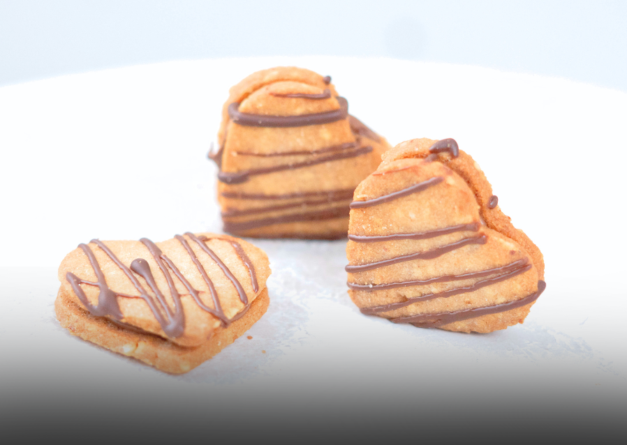 Weizenmehl, Butter, Puderzucker, Nudossi, Haselnusscreme, ohne Plamöl, Haselnüsse, Kuvertüre, natürliches Vanille-Aroma, Soja, pflanzliches Öl (Sonnenblume), Kakaopulver, Magermilchpulver, Sonnenblumenlecithine, Salz, Schalenfrüchten, Ei, Zimt, Natürliche Zitronenschalenpaste